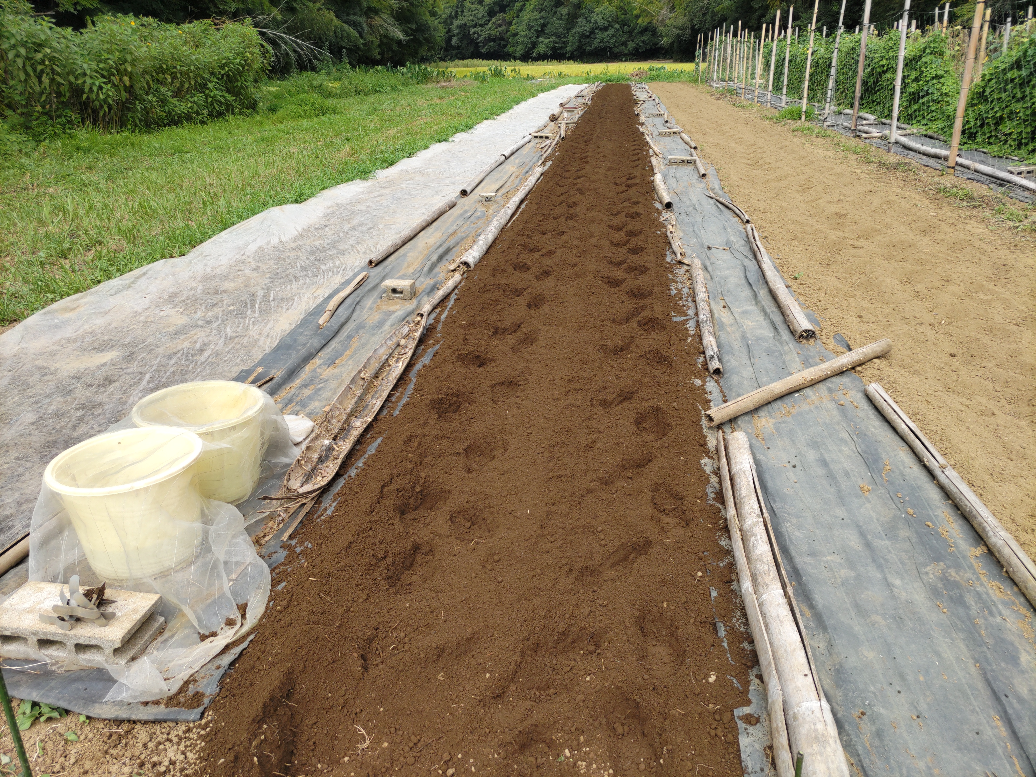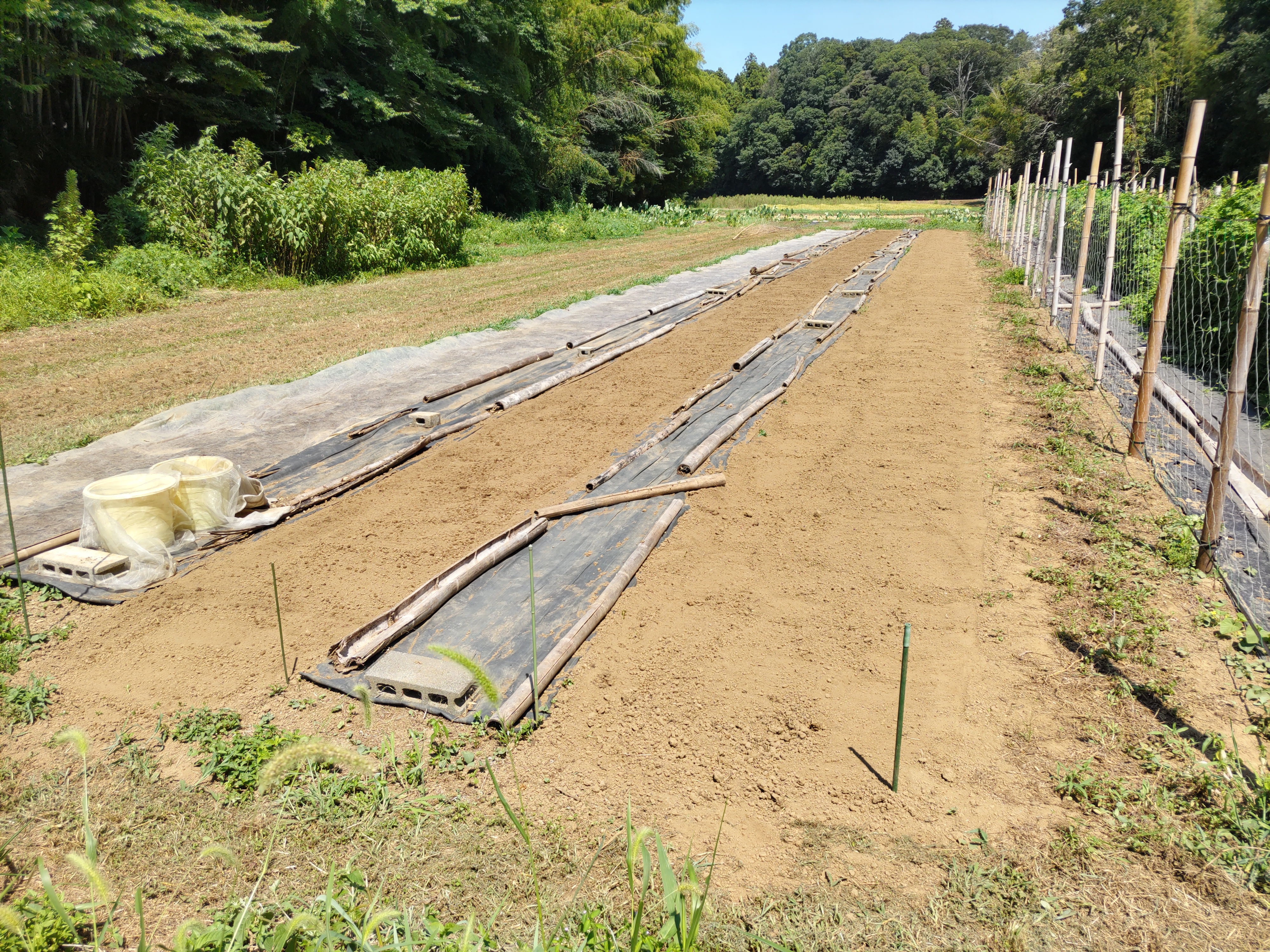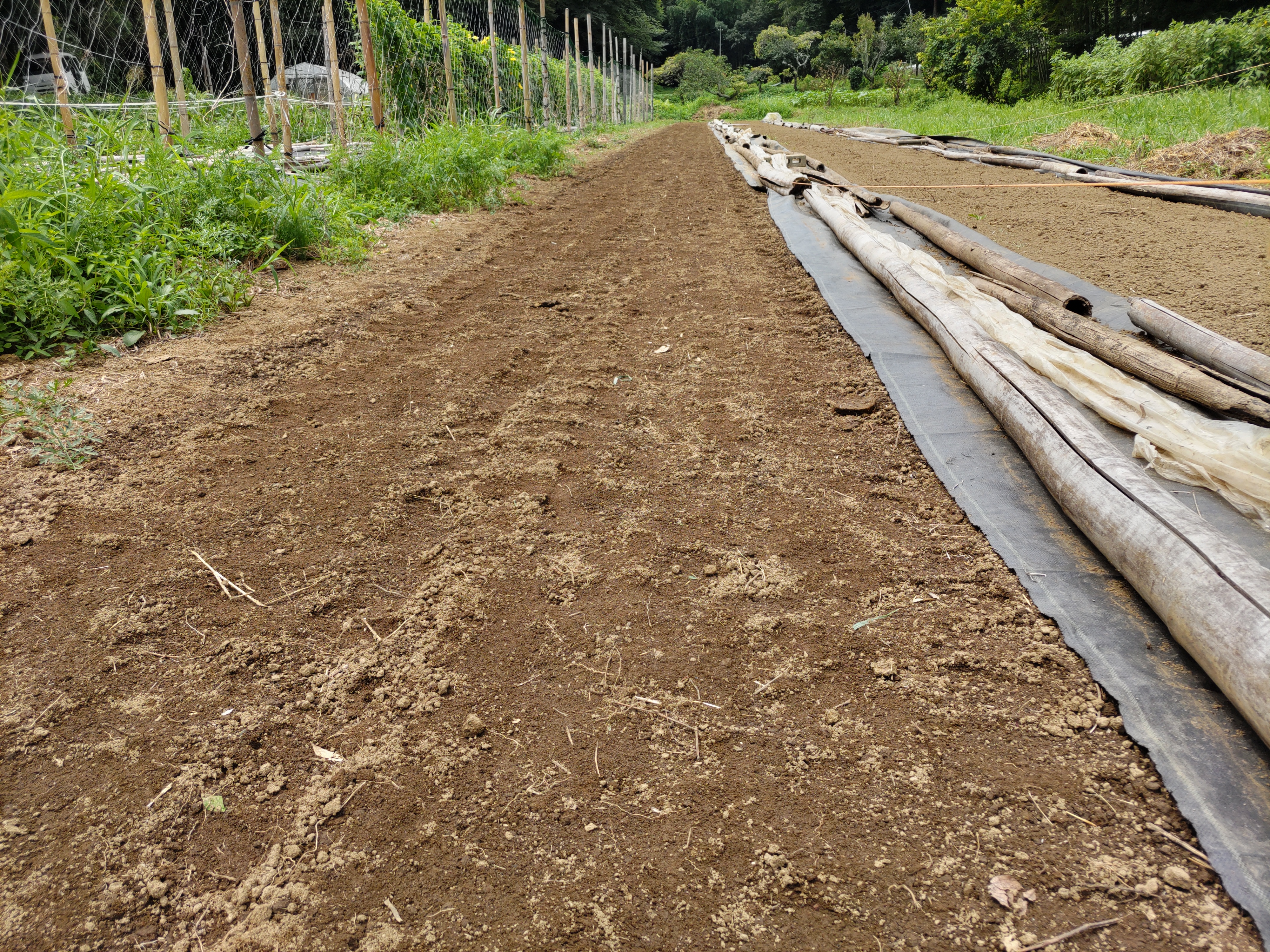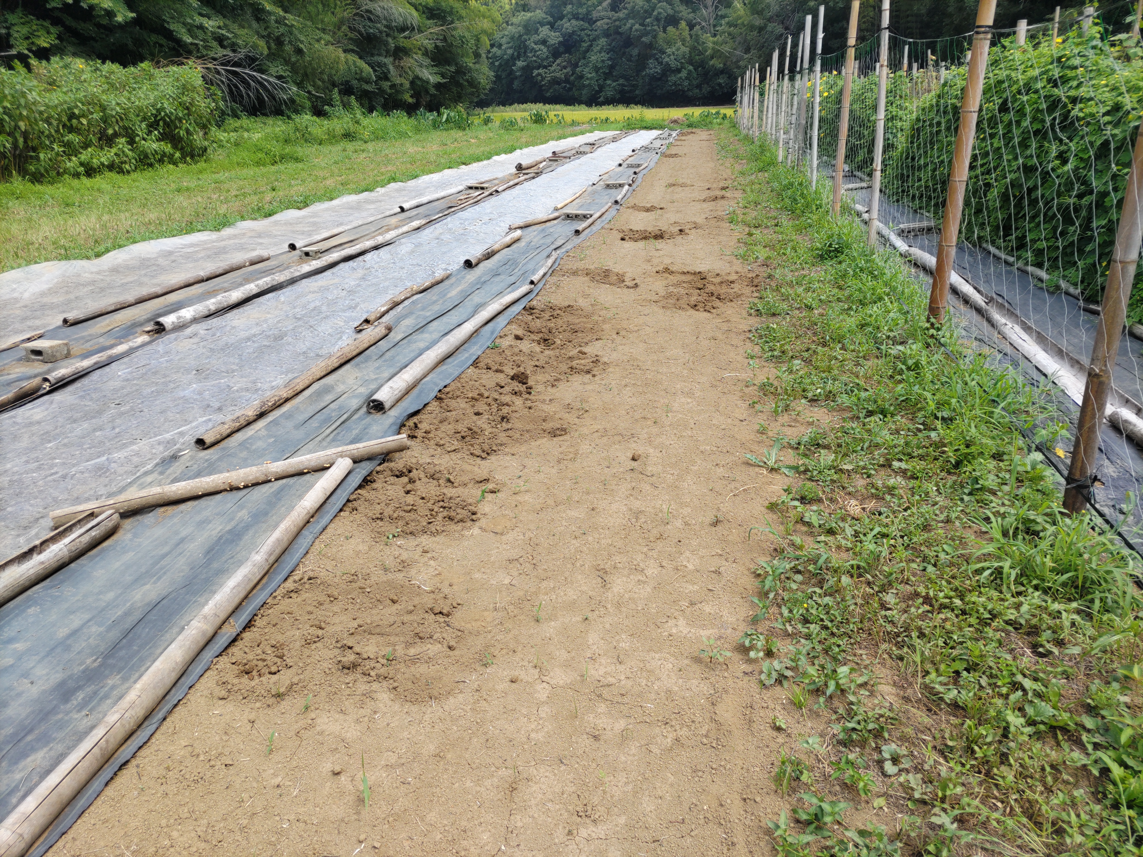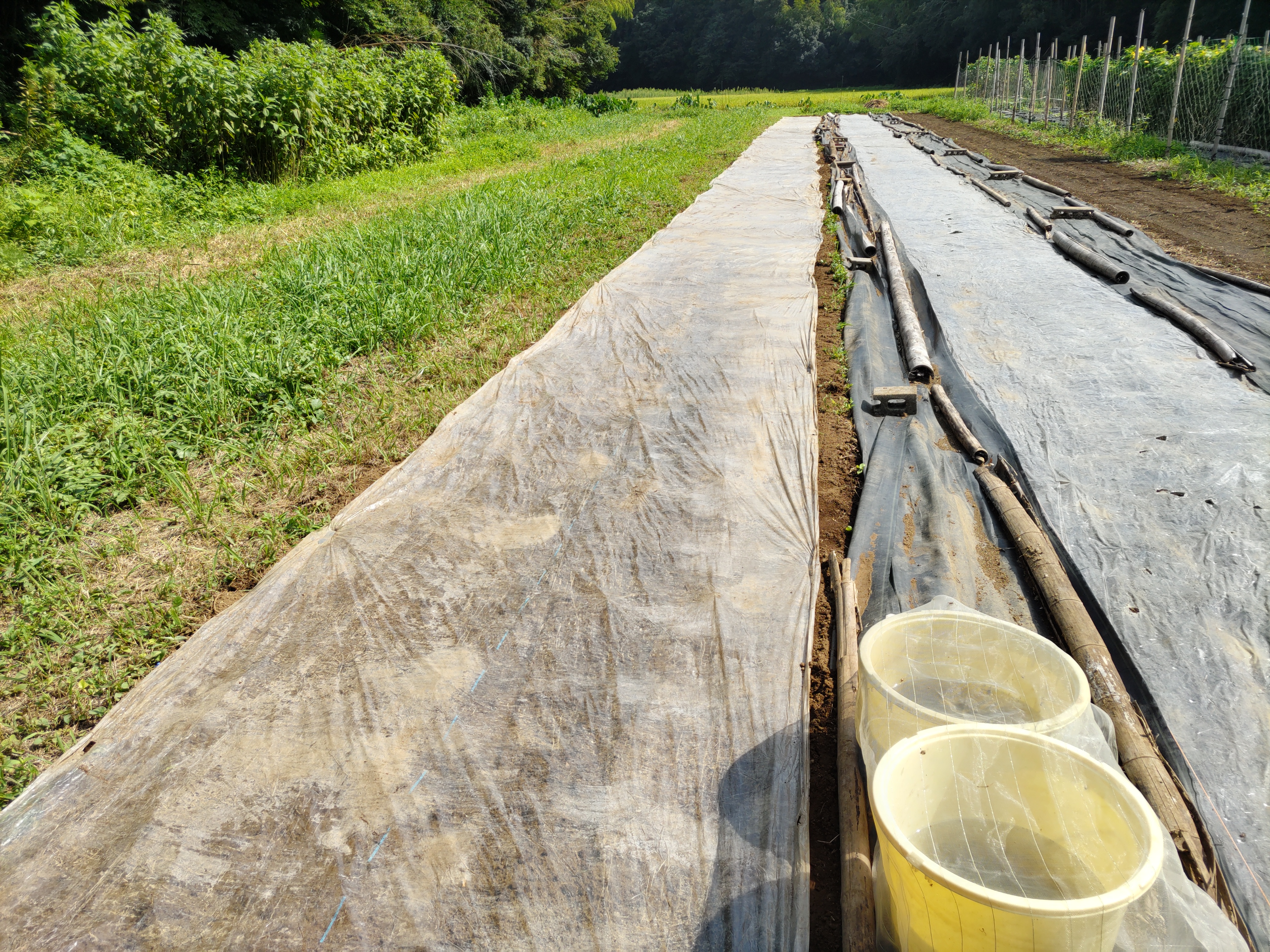 ニンジン畝の透明マルチを撤去しました。