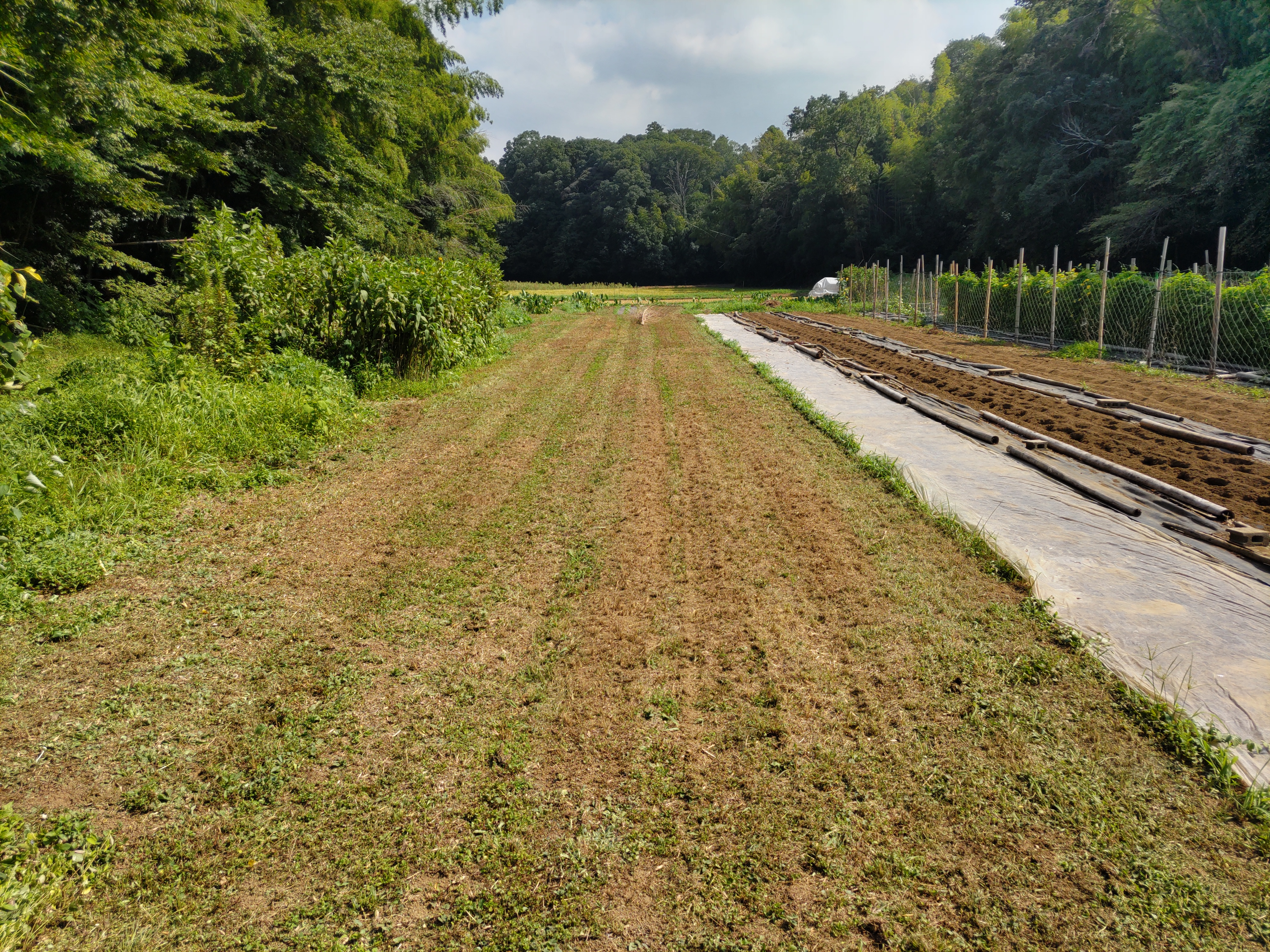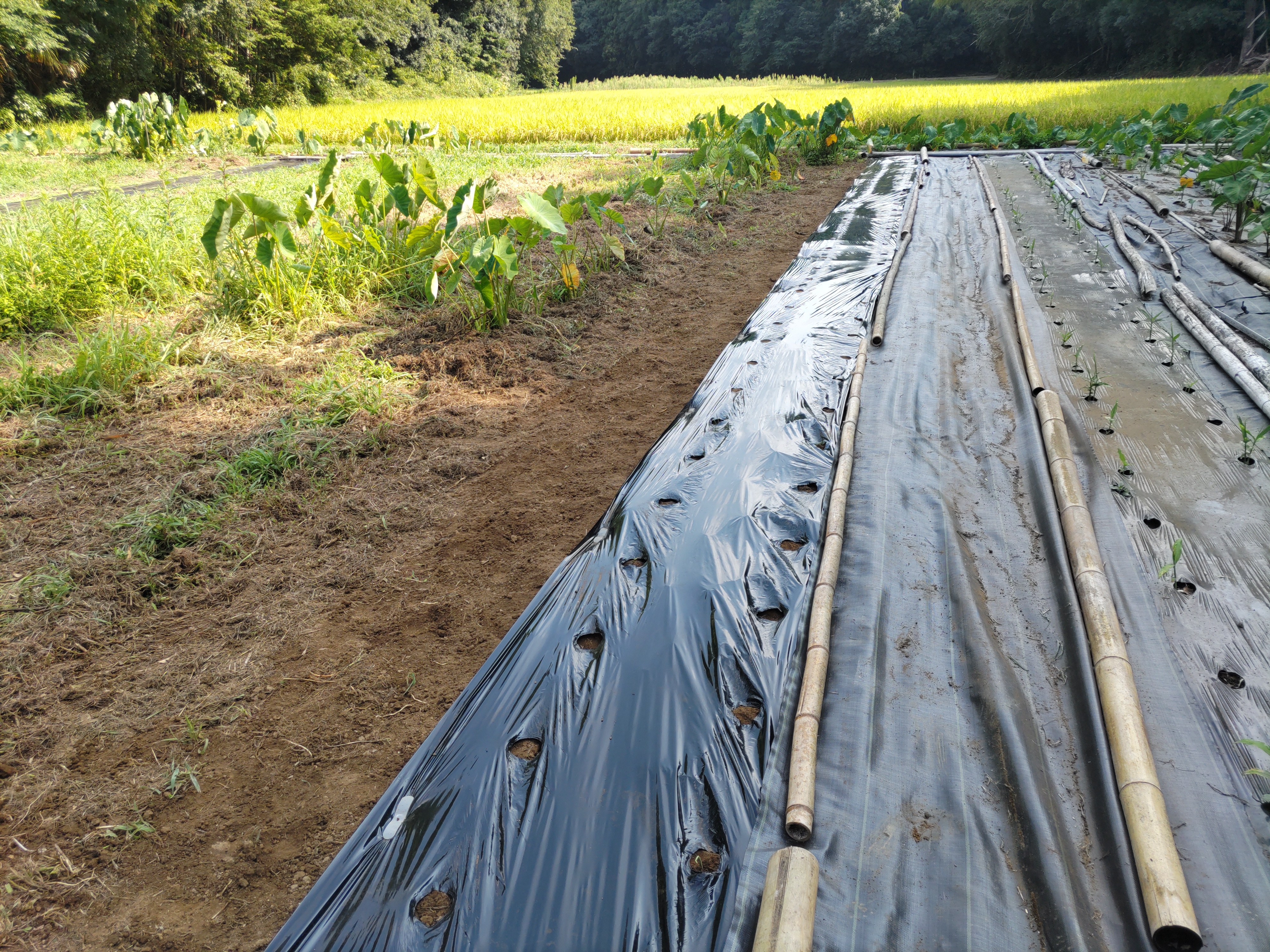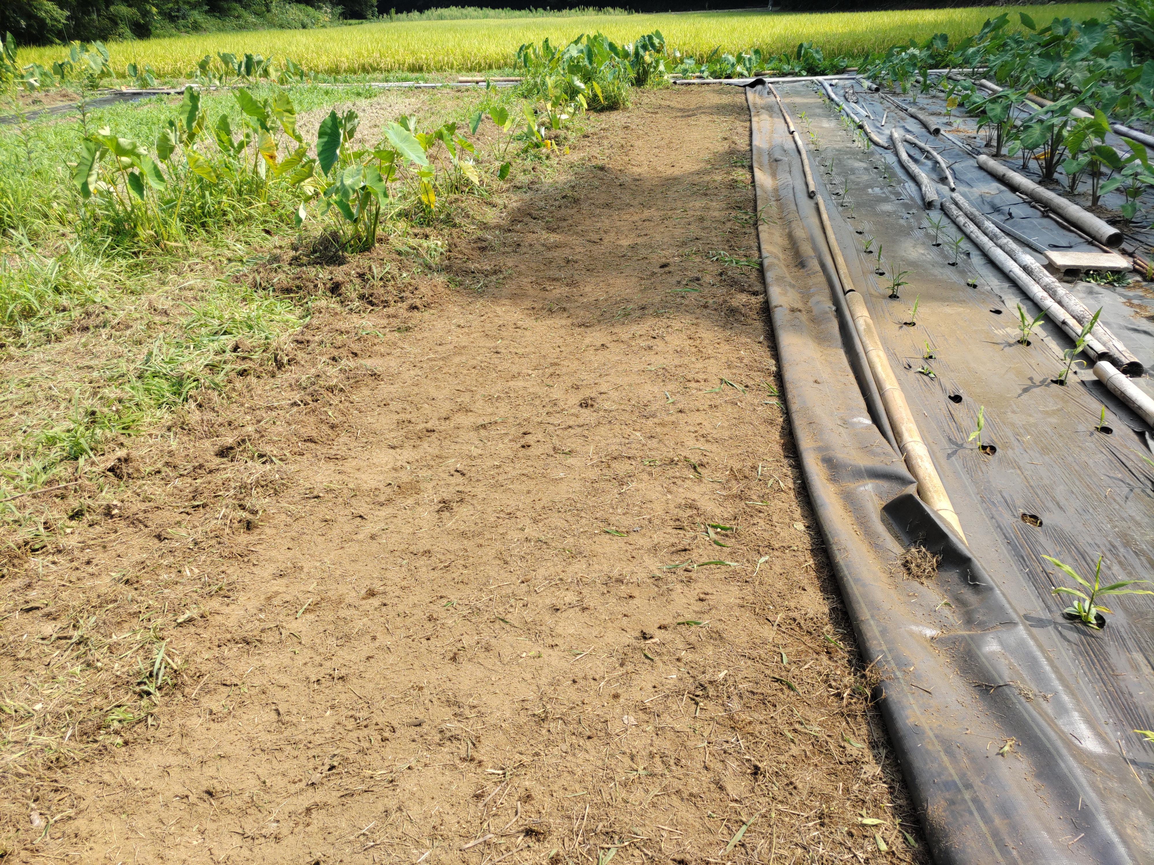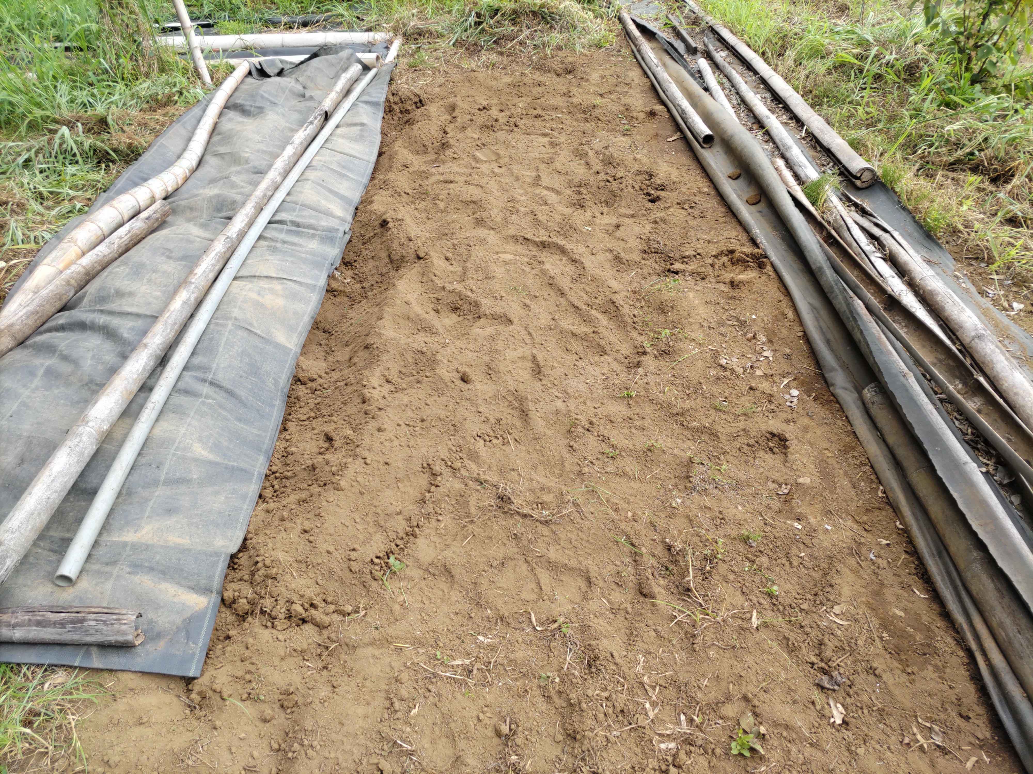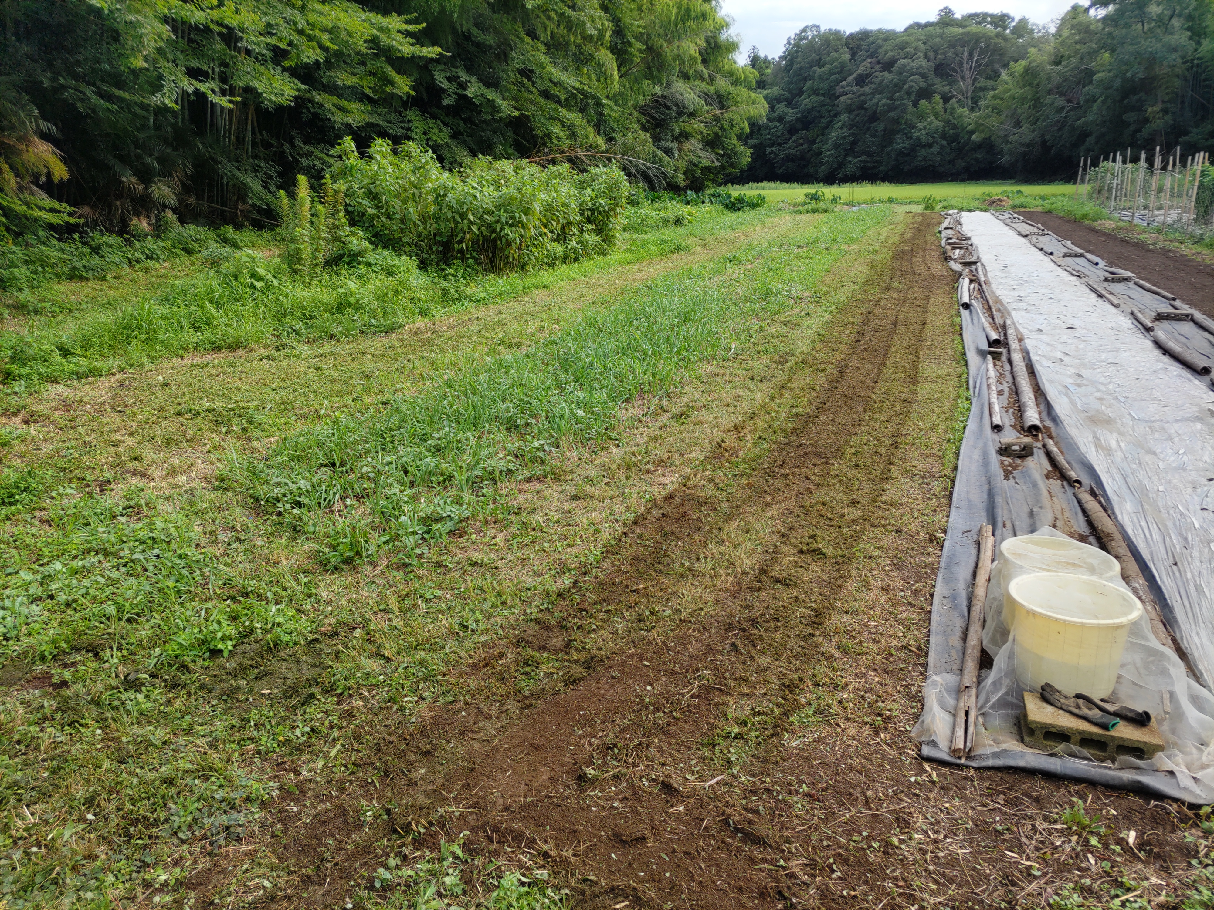 ニンジン畝の透明マルチを撤去しました。