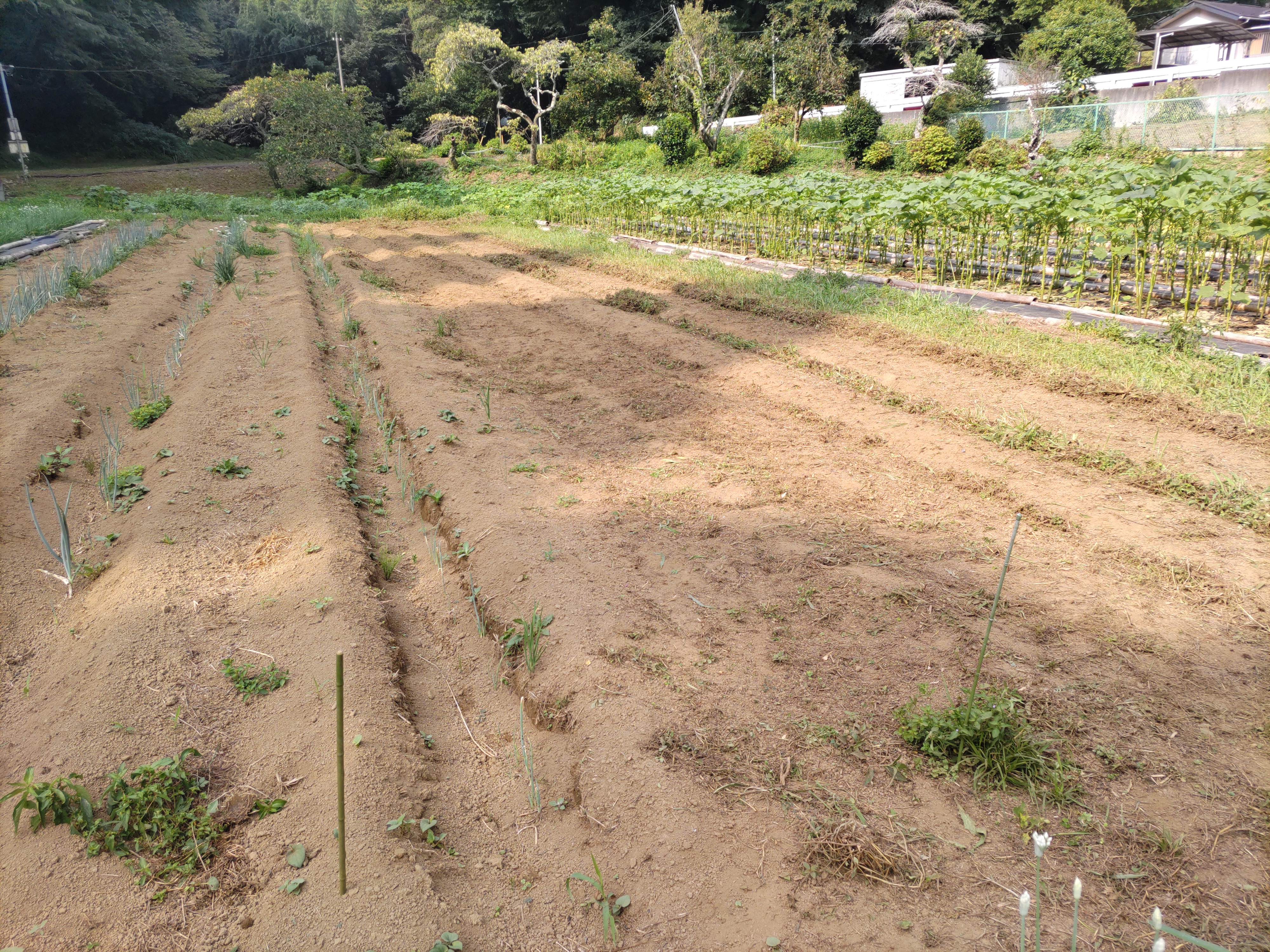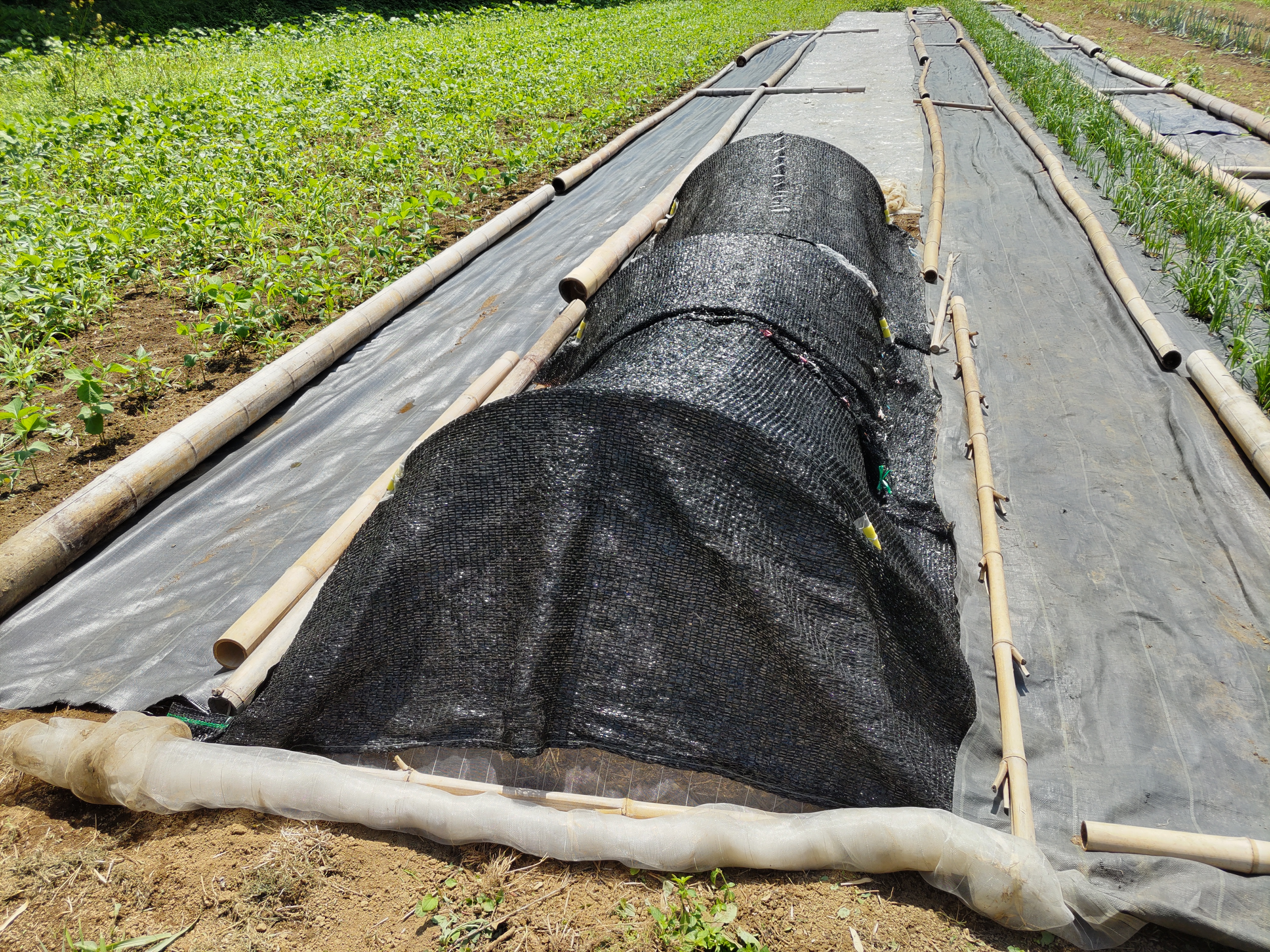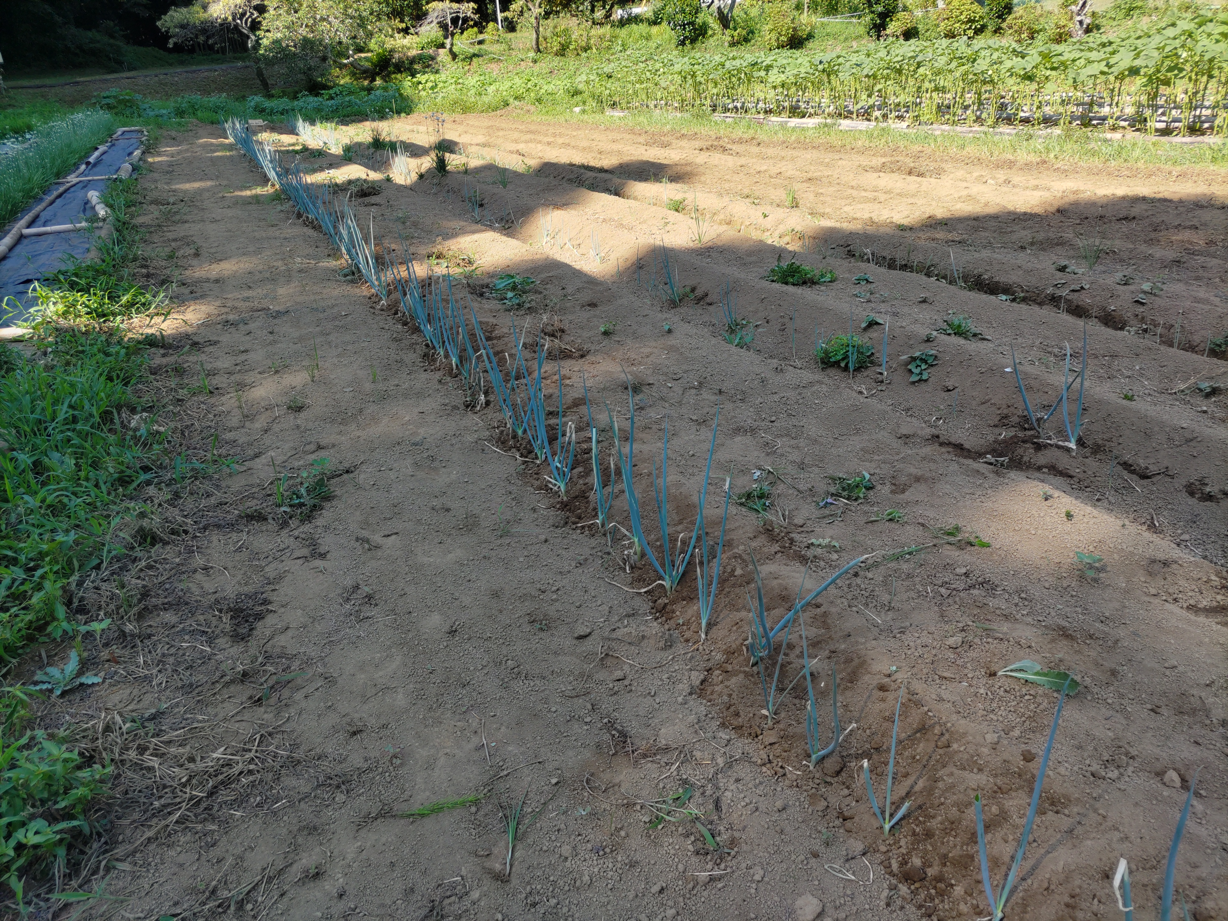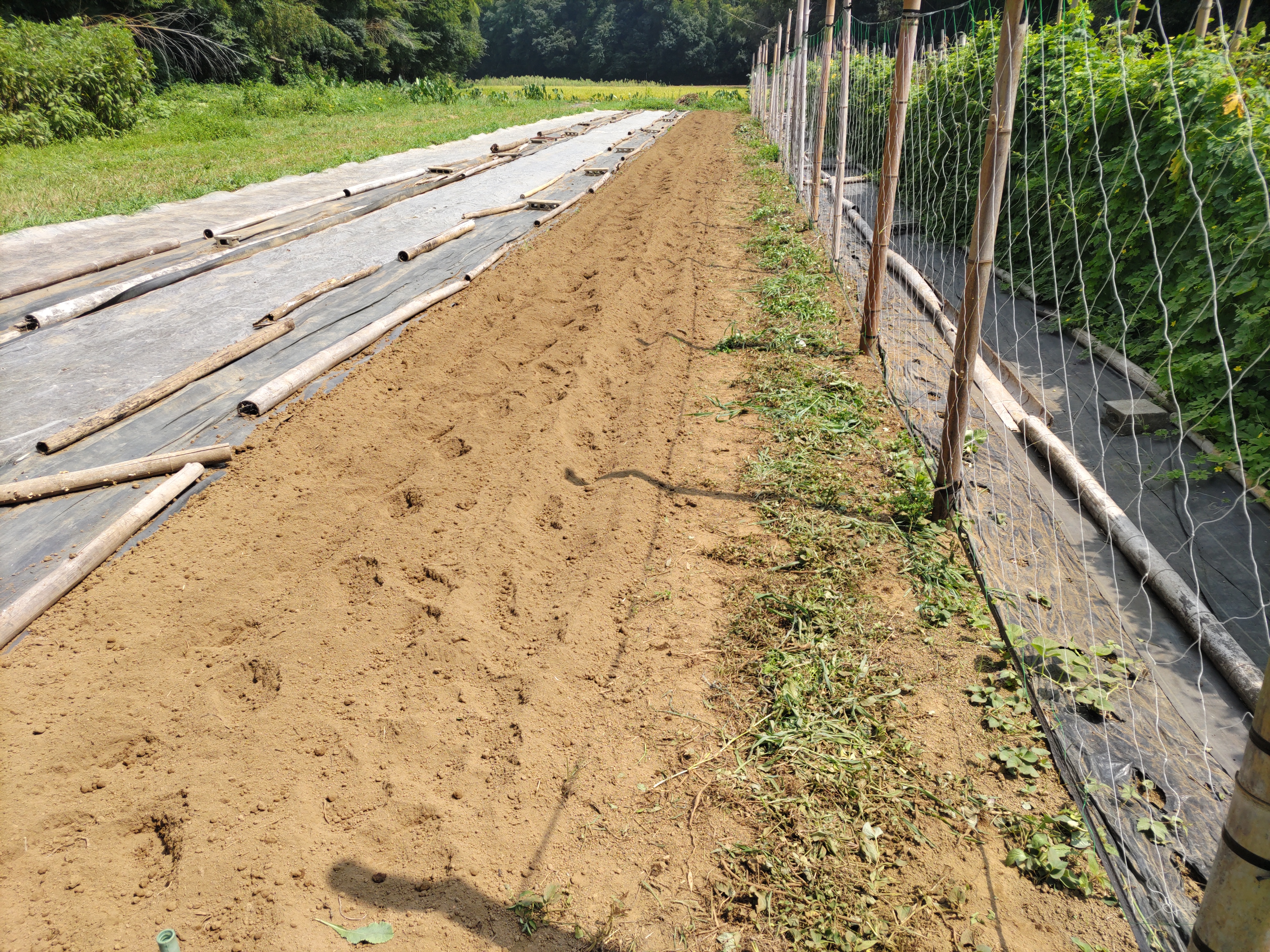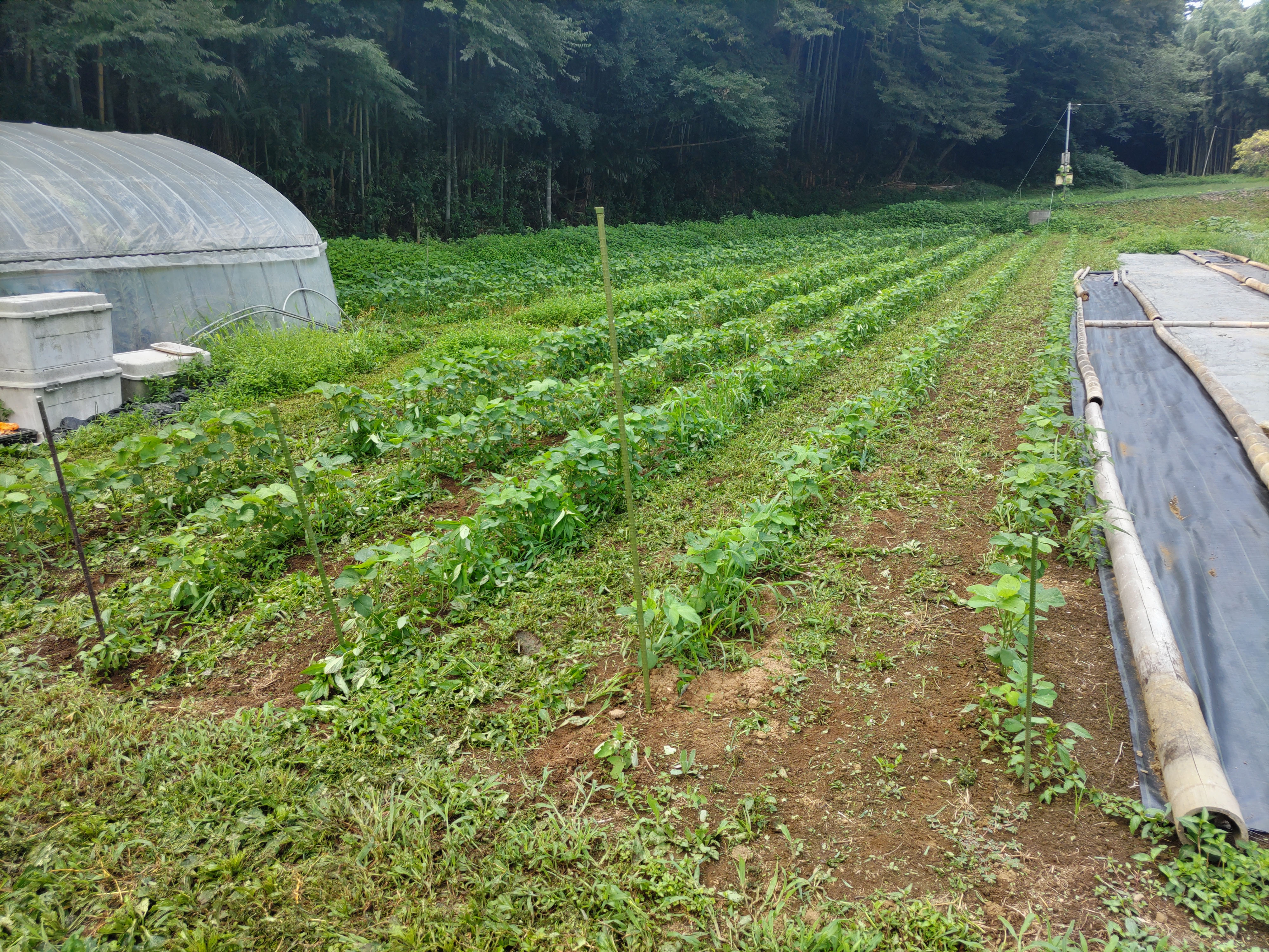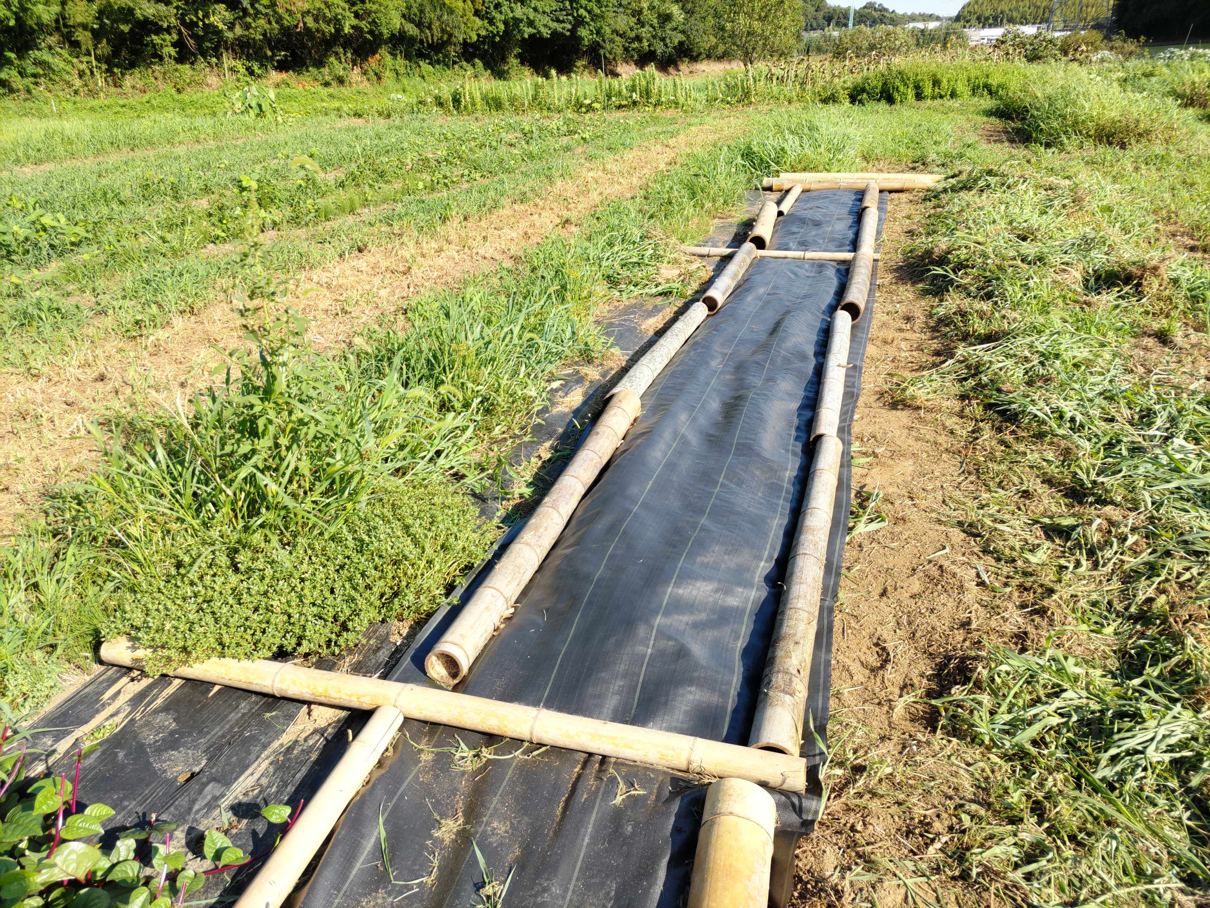 ニンジン畝の透明マルチを撤去しました。