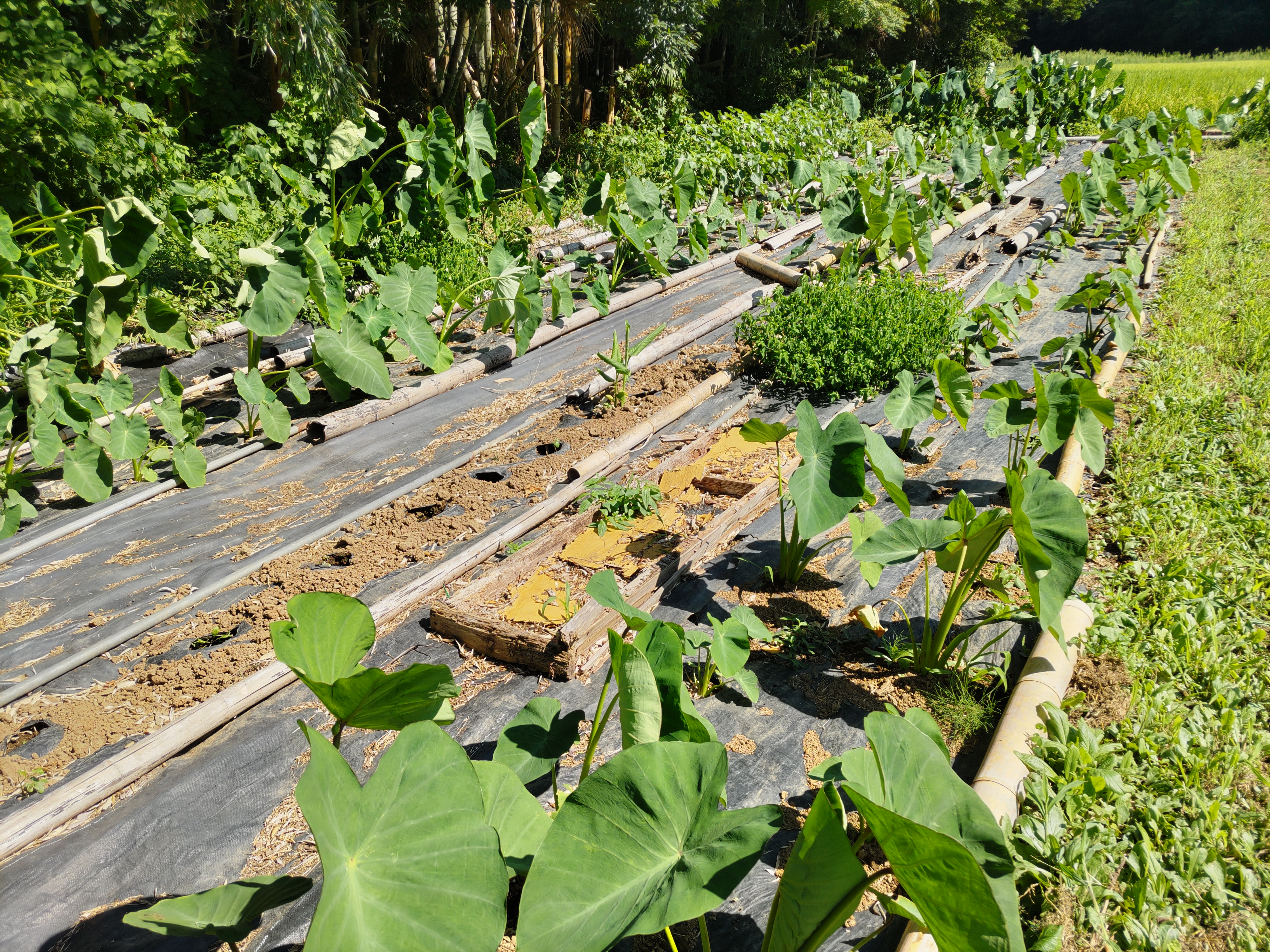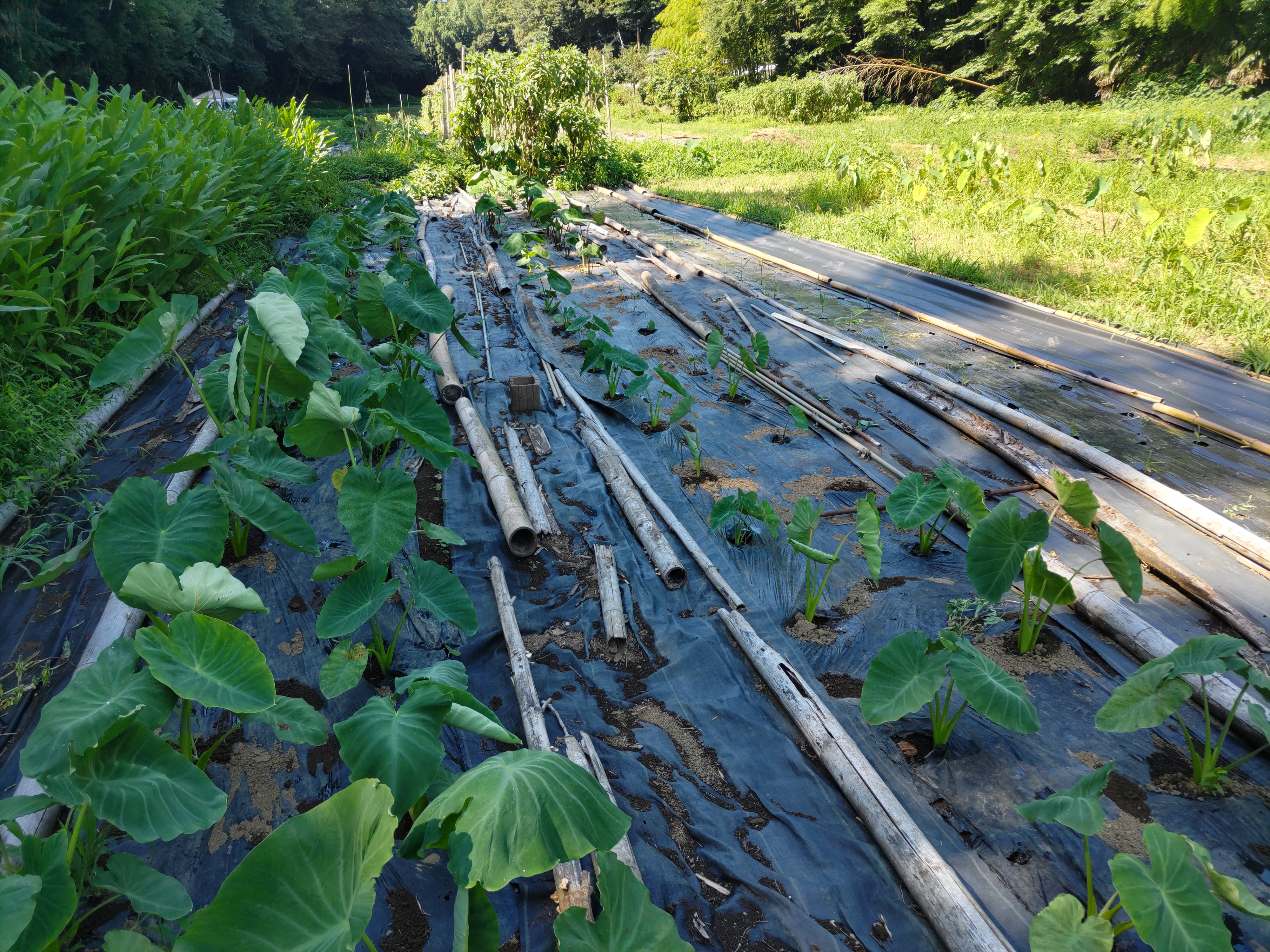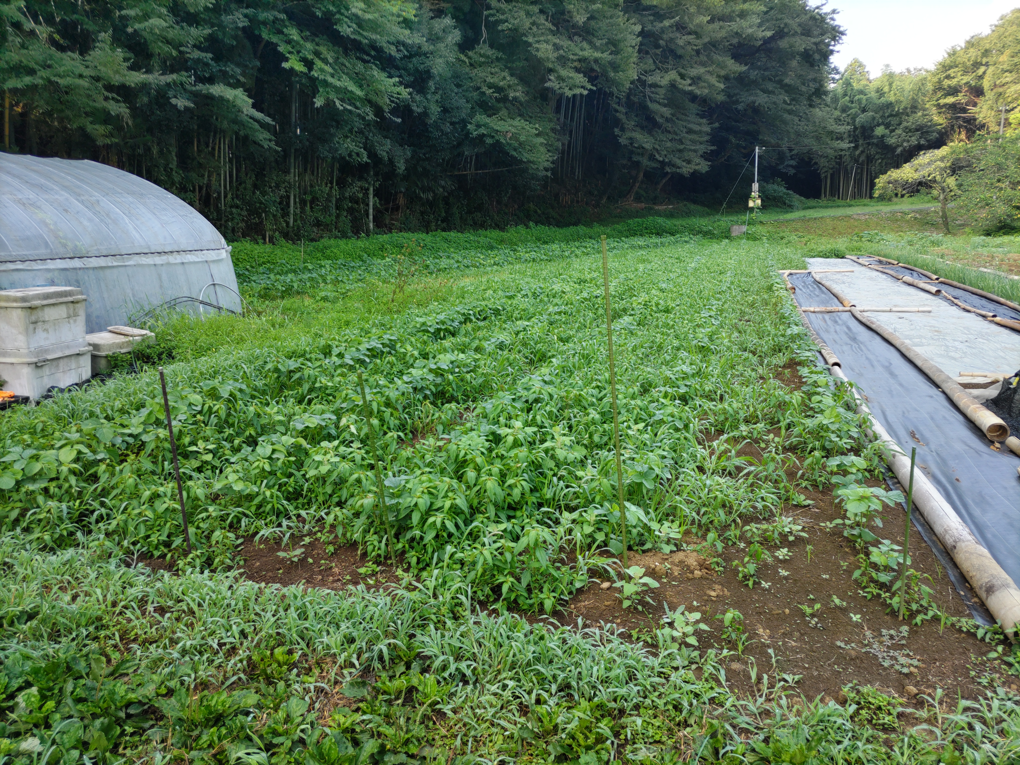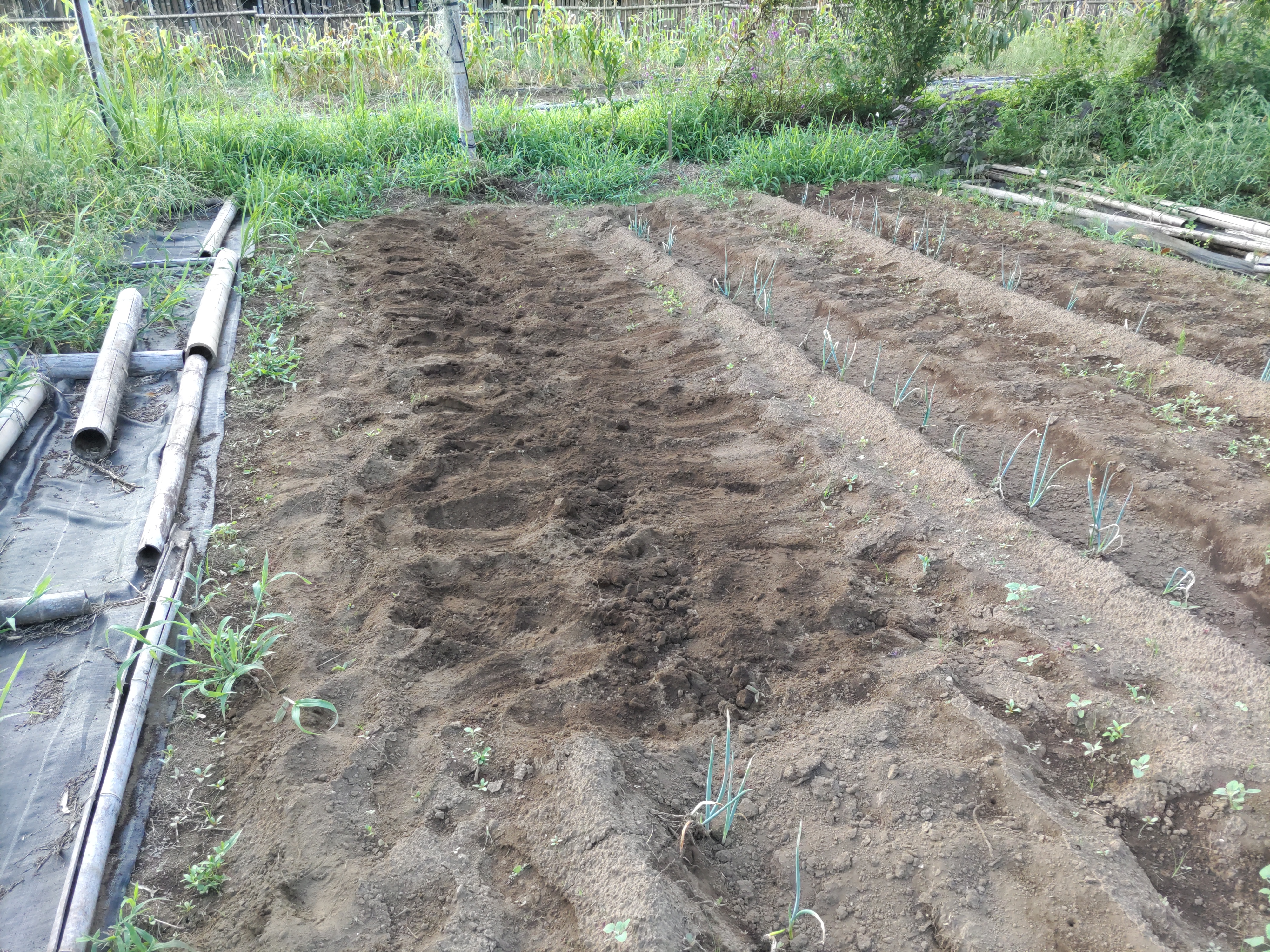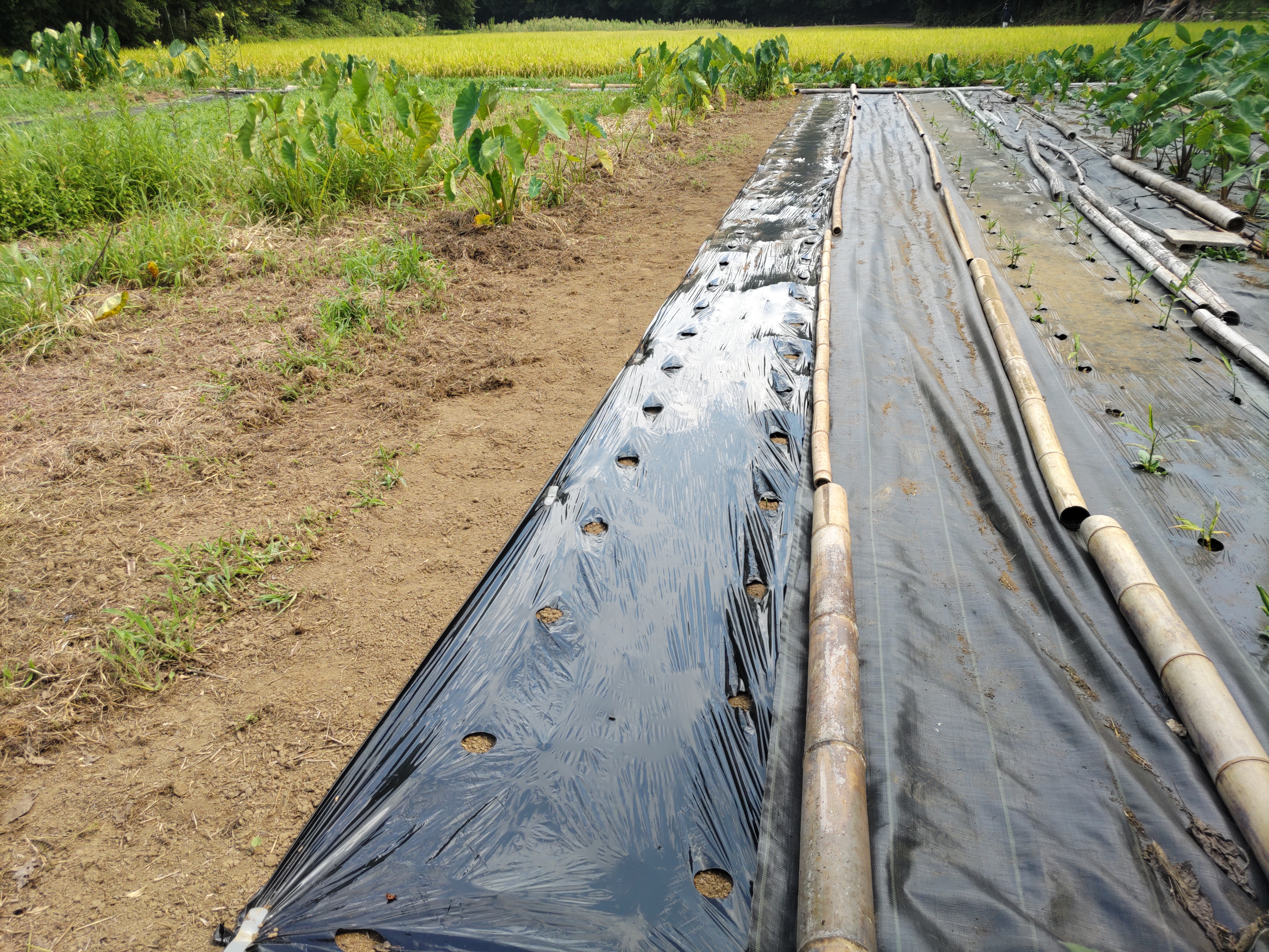 ニンジン畝の透明マルチを撤去しました。