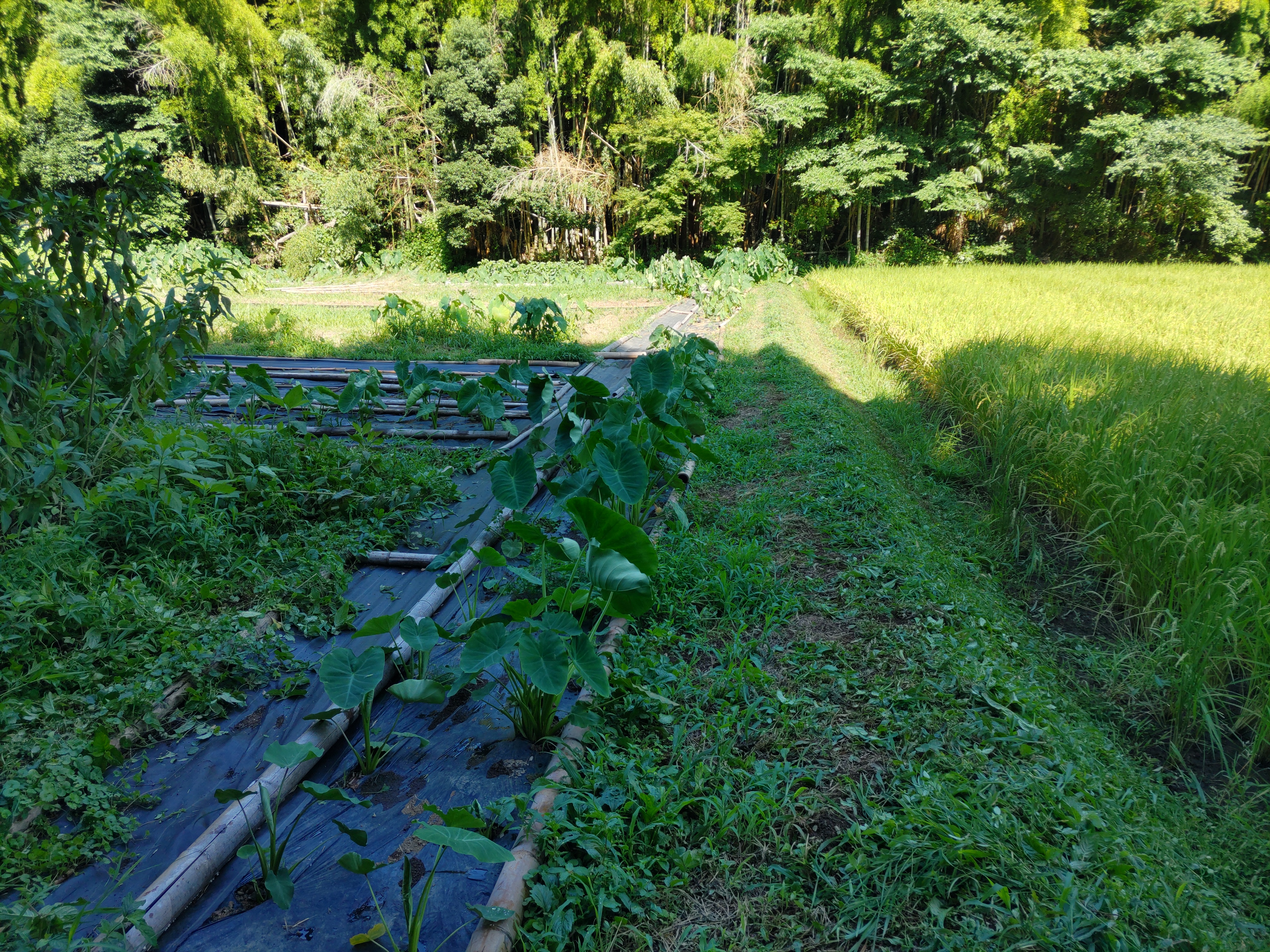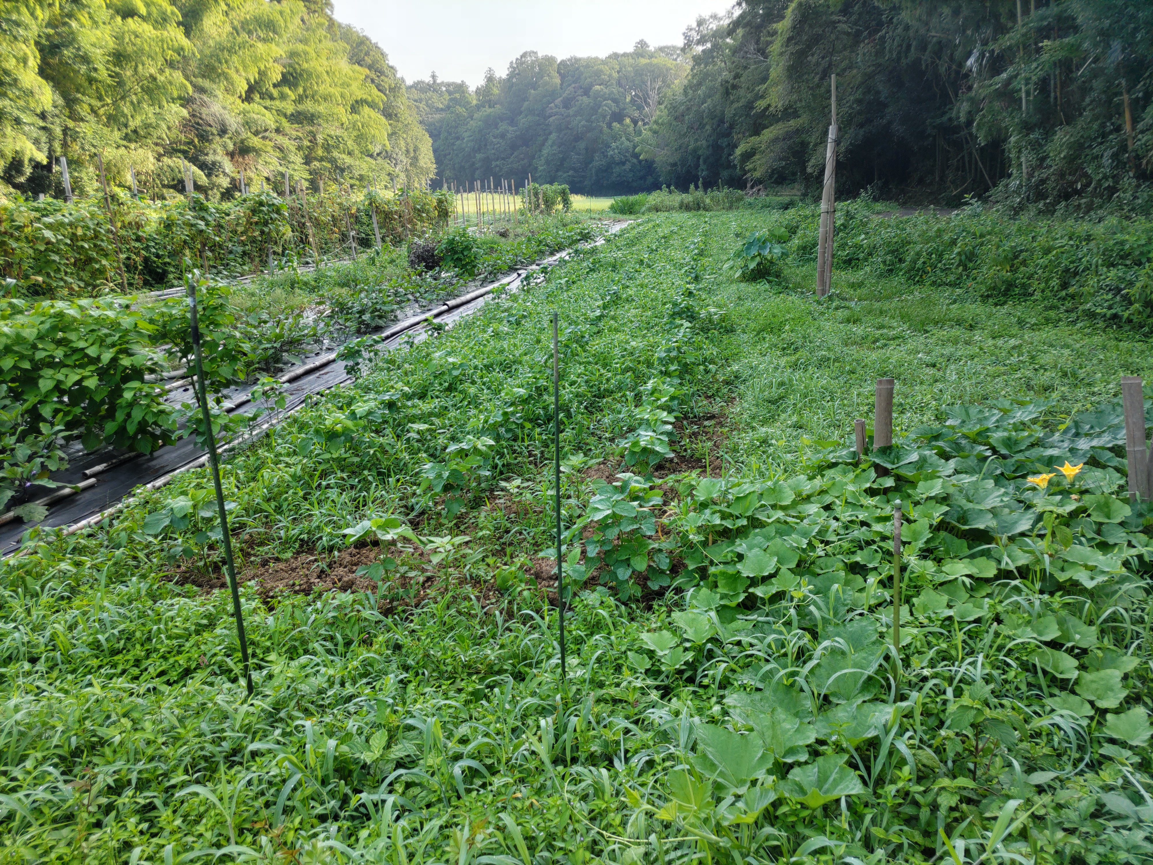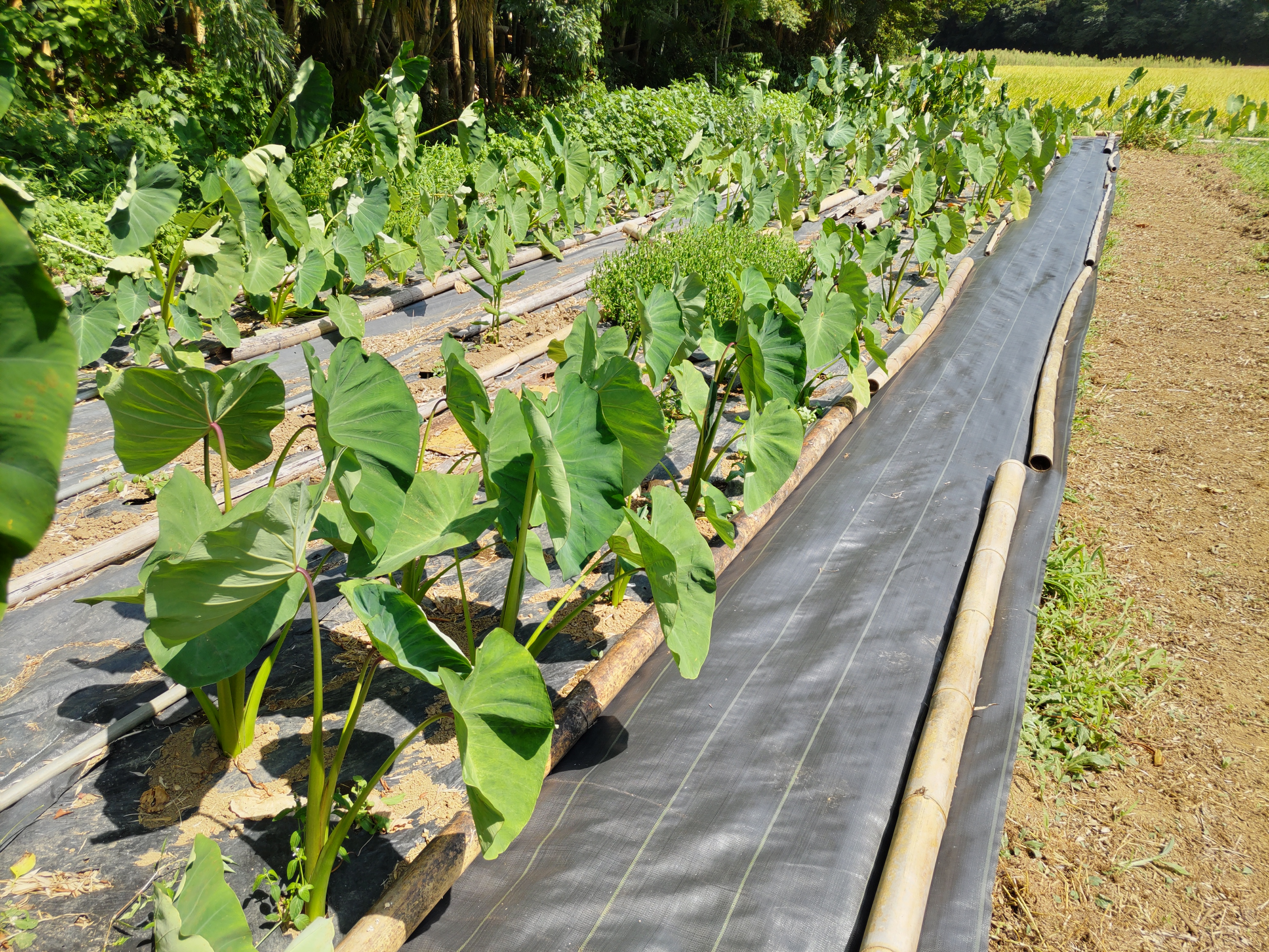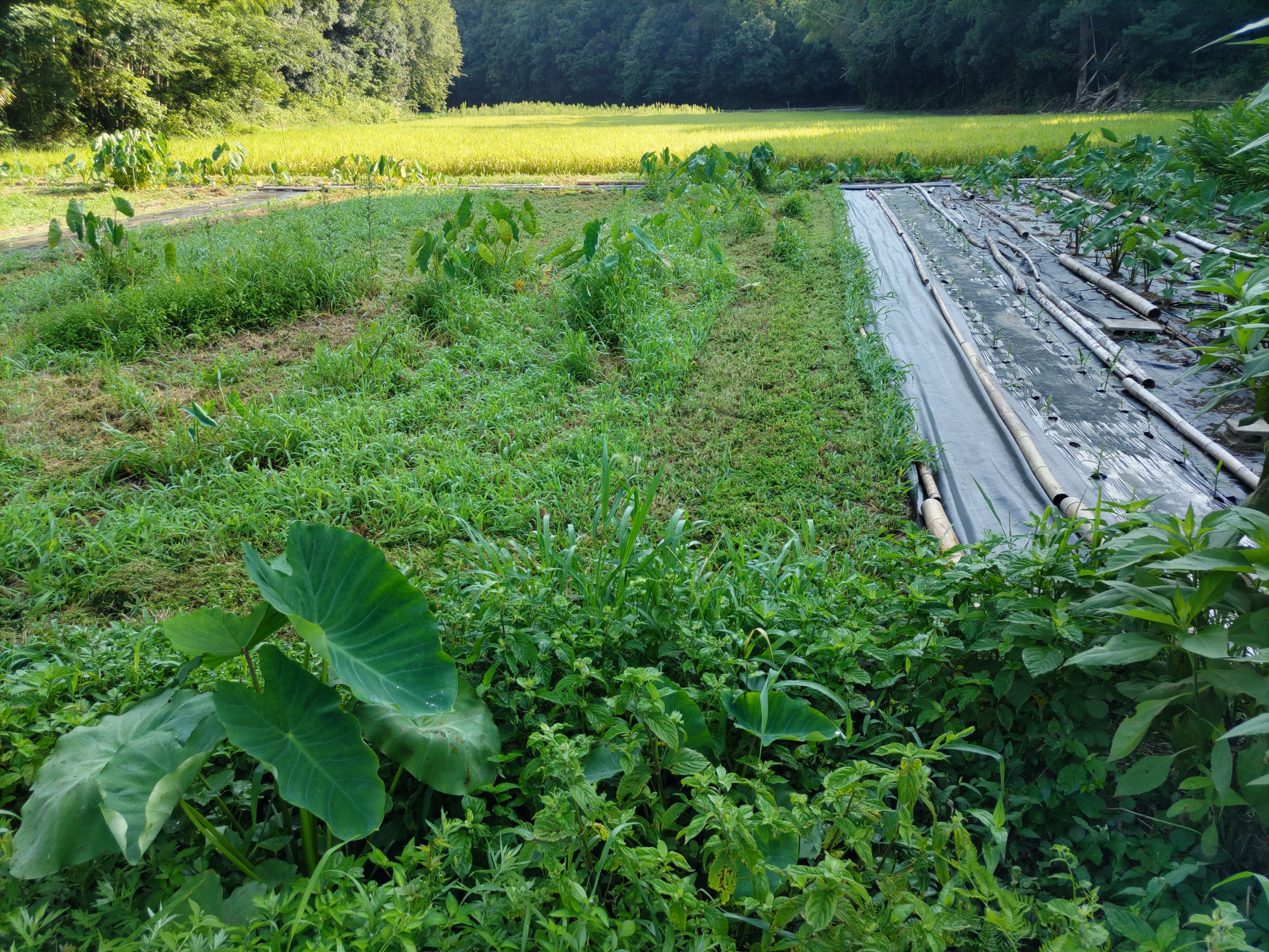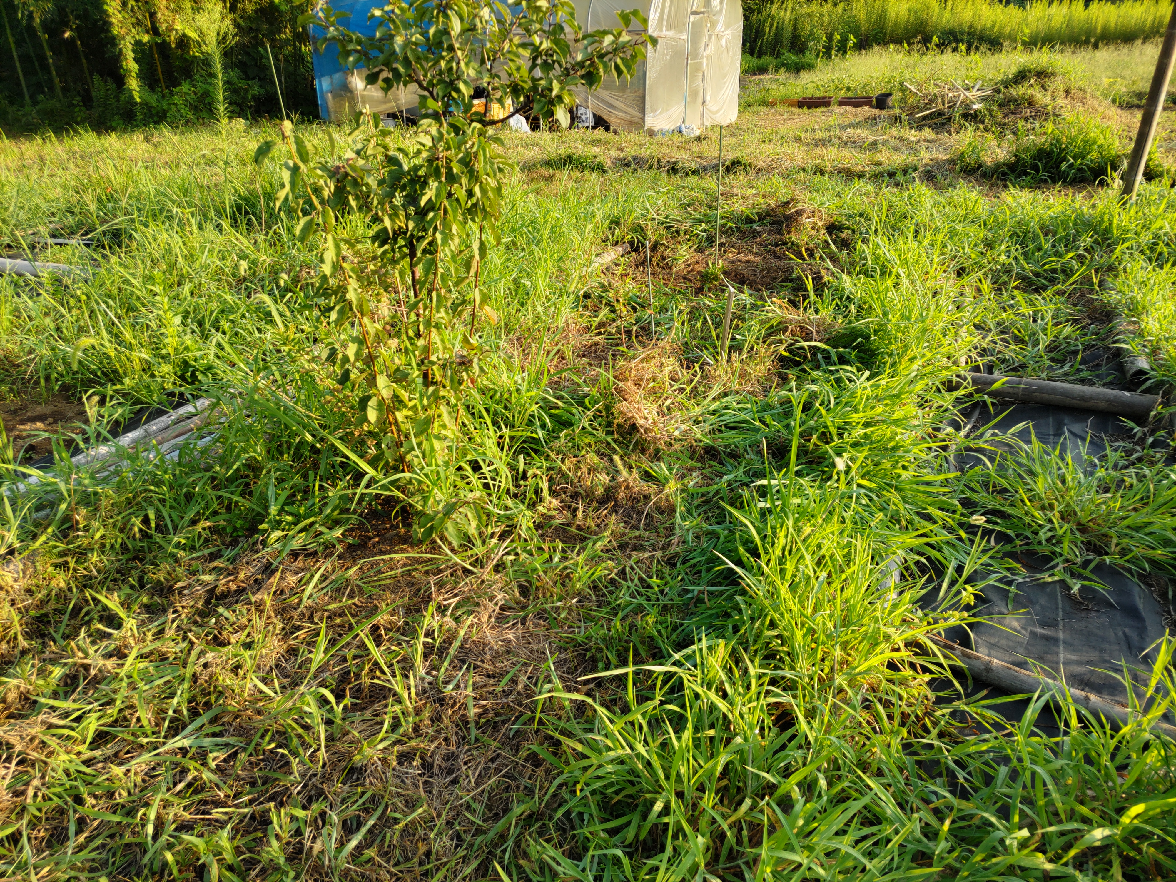 ニンジン畝の透明マルチを撤去しました。