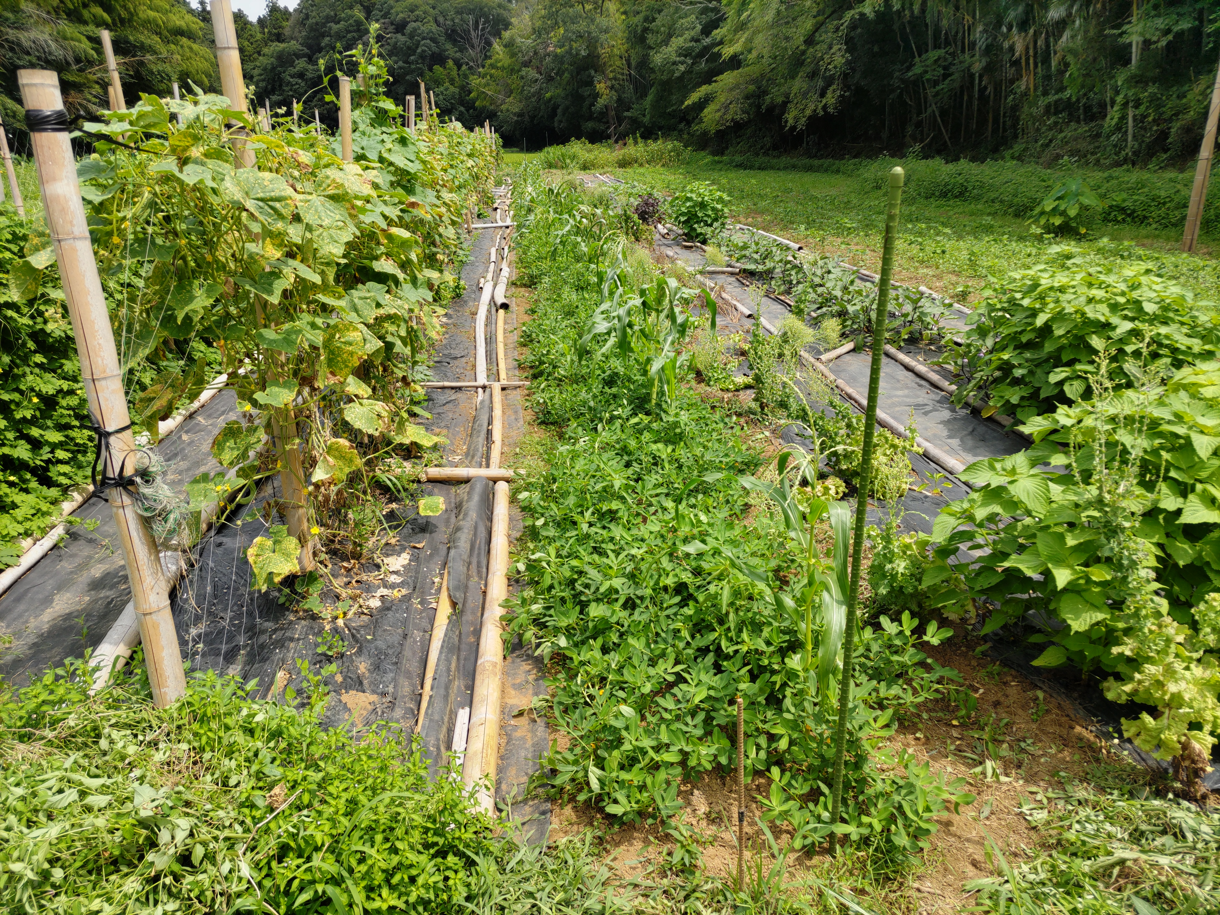 オクラ、ミニトマト、クウシンサイ、ツルムラサキ