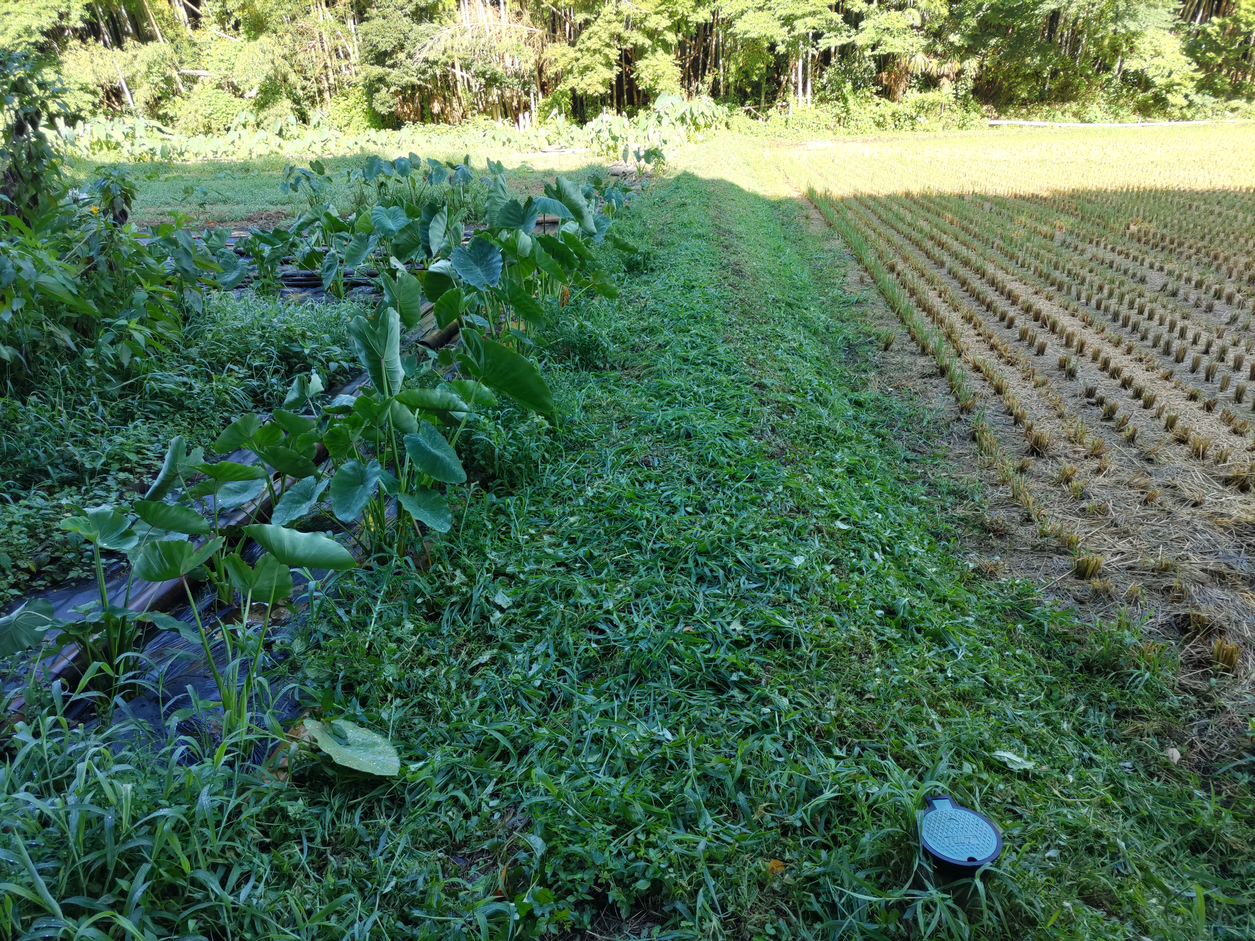 2025/9/6 草刈り、収穫・出荷、透明マルチ撤去 第3ちんみん農園 サトイモ脇の草を刈りました。 第8ちんみん農園 ネギ畝間などの草を刈りました。 第2ちんみん農園 ダイコン畝の草を刈りました。 収穫・出荷 ミニトマト、オクラ、ナスを収穫・出荷しました。 第1ちんみん農園 ノラボウナ畝の透明マルチ、ピンを外しました。